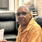 Bennie Haggins working at the Downtown Jimmie Hale Mission, where he assists with intake and with ensuring unsheltered people are provided safety and shelter on freezing nights.