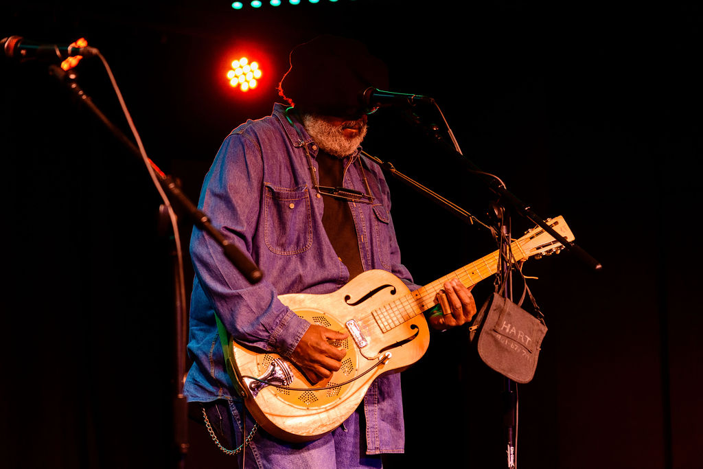 Headliner Alvin Youngblood Hart performed for the packed Woodlawn Theatre.